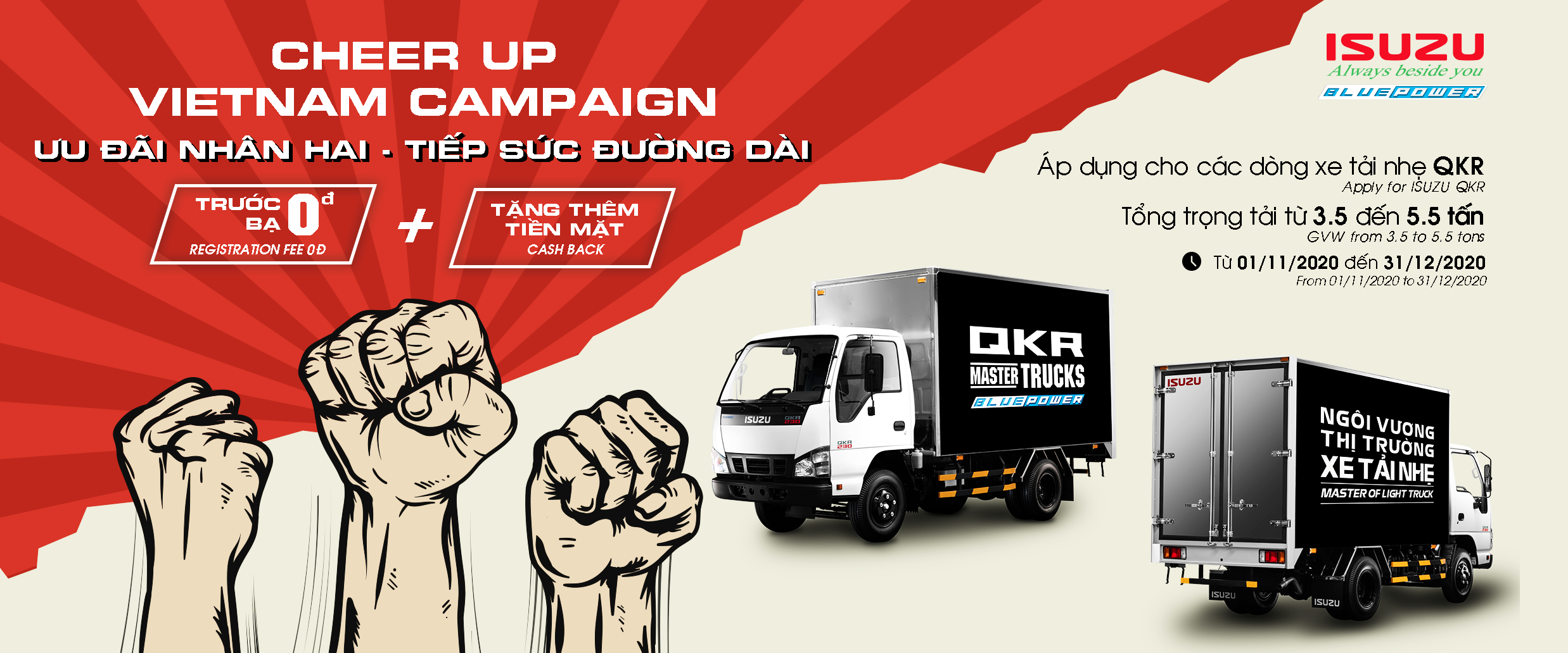 ĐỢT 2: CHEER UP VIETNAM ƯU ĐÃI NHÂN HAI – TIẾP SỨC ĐƯỜNG DÀI CÙNG ISUZU QKR