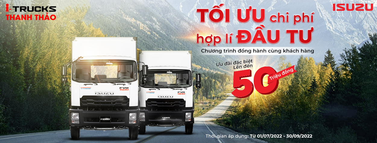 Đồng hành cùng khách hàng và doanh nghiệp, hệ thống Đại lý Isuzu i-TRUCKS triển khai chương trình đặc biệt với tên gọi: “F-SERIES: TỐI ƯU CHI PHÍ – HỢP LÝ ĐẦU TƯ” với mức hỗ trợ lên đến 50 triệu VNĐ. Chương trình áp dụng cho các dòng sản phẩm xe tải Isuzu F-Series.