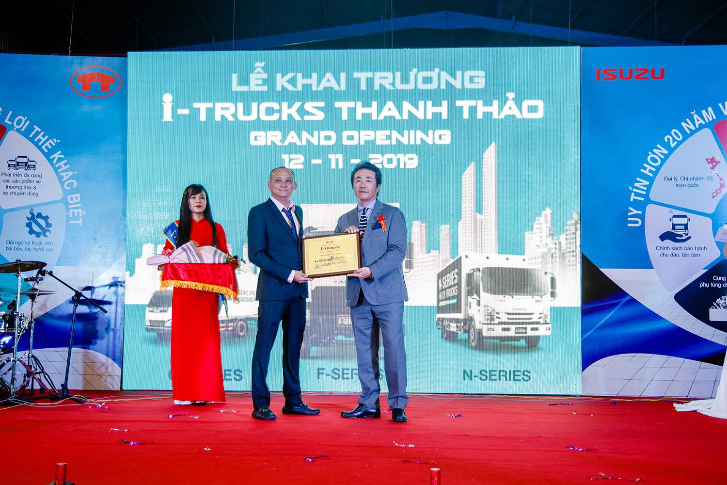 Sau khi phát biểu, ông Hidekazu Noto trao bằng chứng nhận đại lý ủy quyền 3S i-Trucks cho Đại lý Thanh Thảo