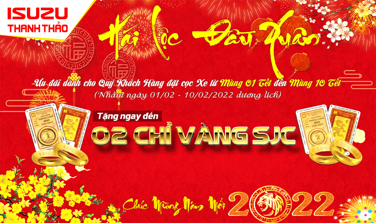Đặc biệt: Quý Khách Hàng đặt cọc xe từ Mùng 6 tết đến mùng 10 tết sẽ được tặng ngay đến 2 chỉ vàng SJC