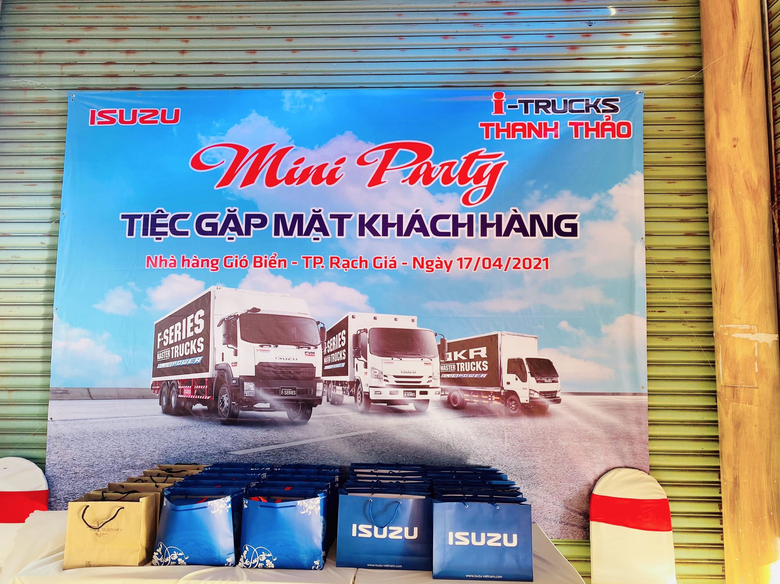 Nhằm tri ân Quý khách hàng tại khu vực Tỉnh Kiên Giang đã tin dùng và ủng hộ sản phẩm xe tải Isuzu tại Isuzu Thanh Thảo trong suốt thời gian vừa qua. Ngày 17/04/2021, Isuzu Thanh Thảo trân trọng tổ chức tiệc Gặp mặt khách hàng thân thiết (Mini-Party) tại Nhà hàng Gió Biển (271, Nguyễn An Ninh, P. Vĩnh Bảo, TP. Rạch Giá, Tỉnh Kiên Giang)