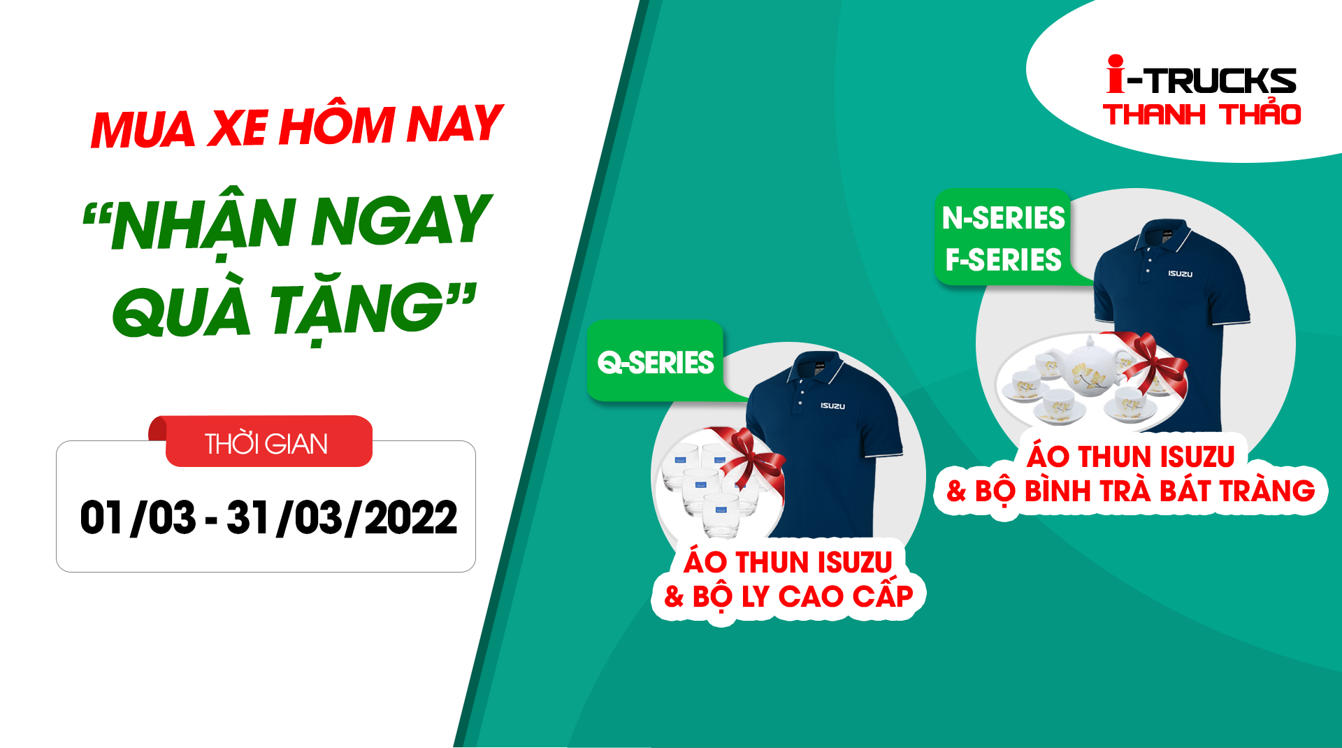 - Dòng Q-Series: Tặng bộ quà tặng: Áo thun Isuzu cao cấp + Bộ ly thủy tinh