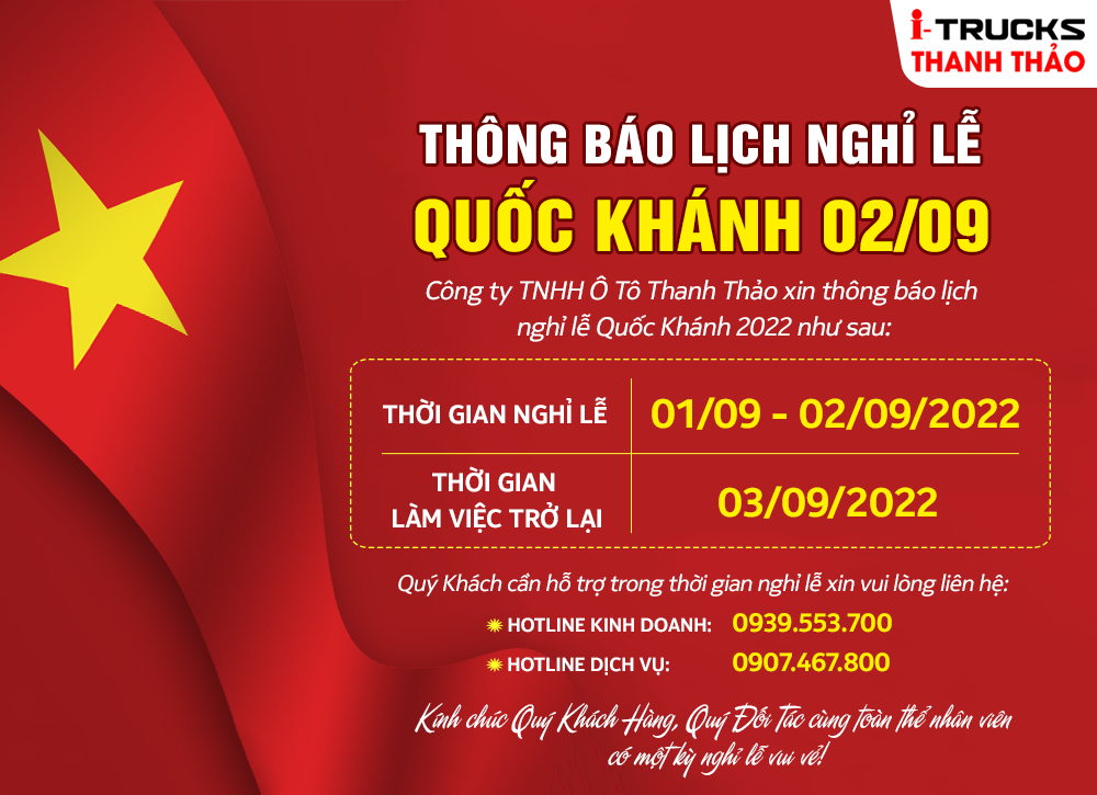 Isuzu Thanh Thảo xin thông báo lịch nghỉ lễ Quốc Khánh của chúng tôi như sau: