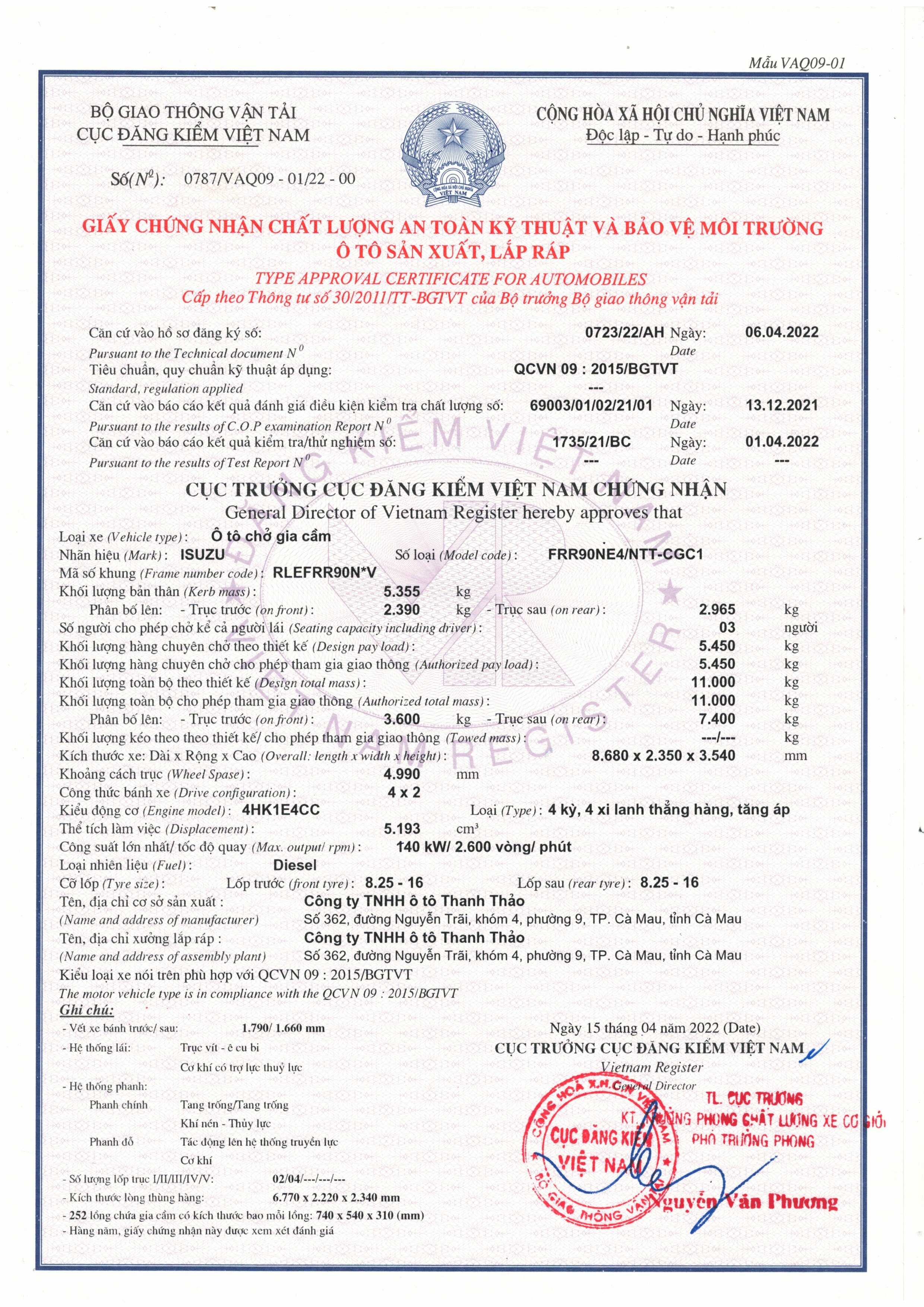 | Tải trọng cho phép chuyên chở | 5.450 Kg | |