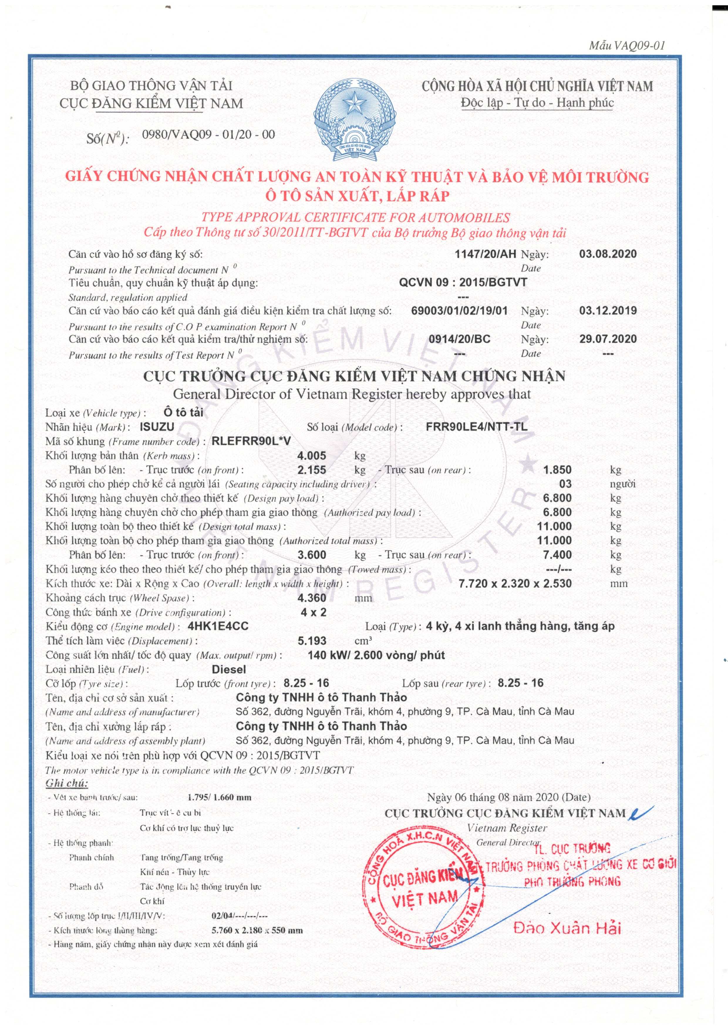 | Tải trọng cho phép chuyên chở | 6.800 Kg | |