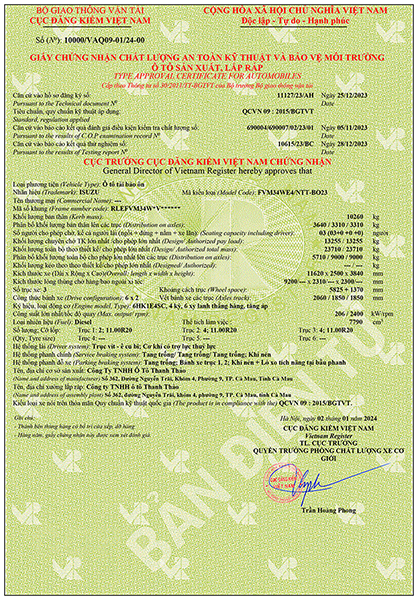 | TẢI TRỌNG | Trọng lượng bản thân | 10.260 Kg |